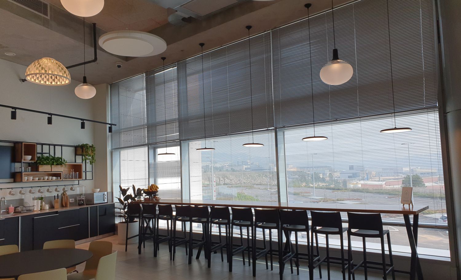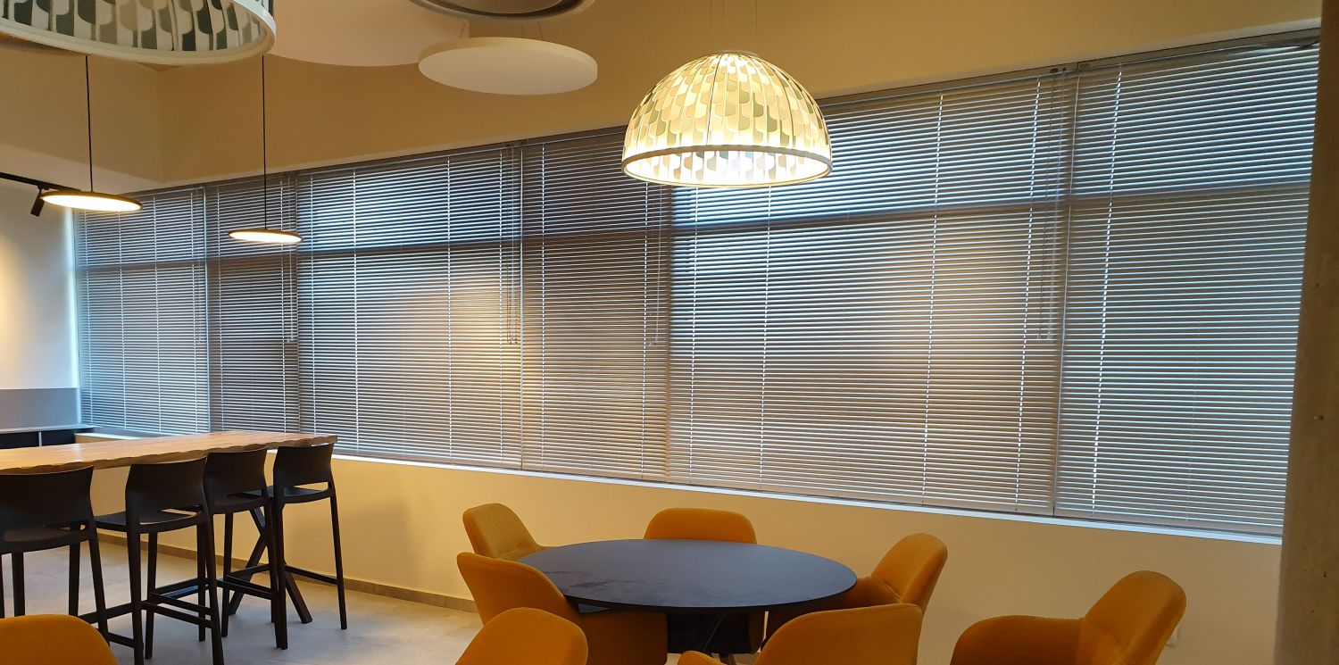 באזור משרדים מומלץ להתקין וילונות מבודדים רעשים וחוסמים אור, בעיצוב מינימליסטי בגוונים ניטרליים, מסייעים ליצירת חלל מקצועי עם תנאי נוחות ופרטיות הנדרשים לניהול מוסדות קולינריים.