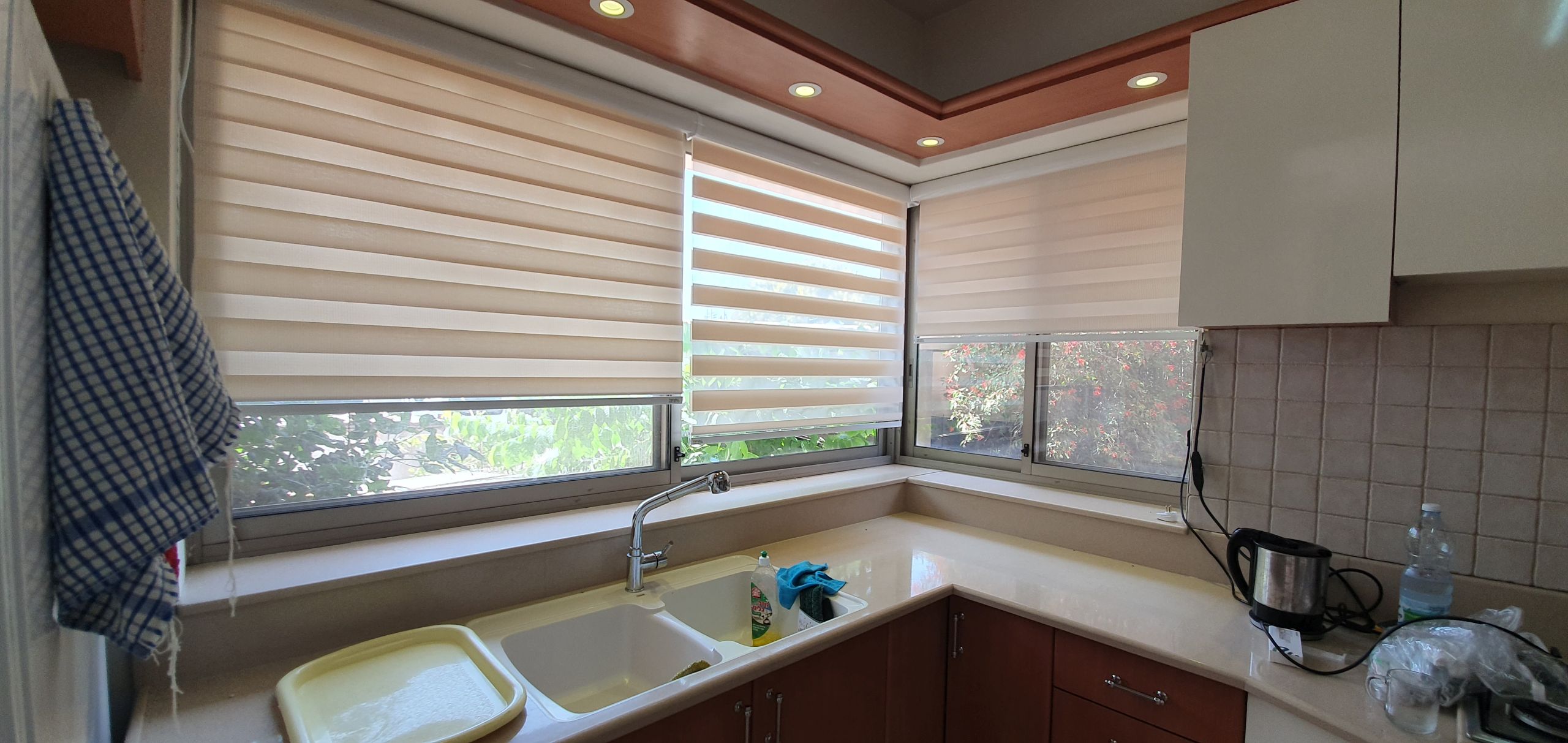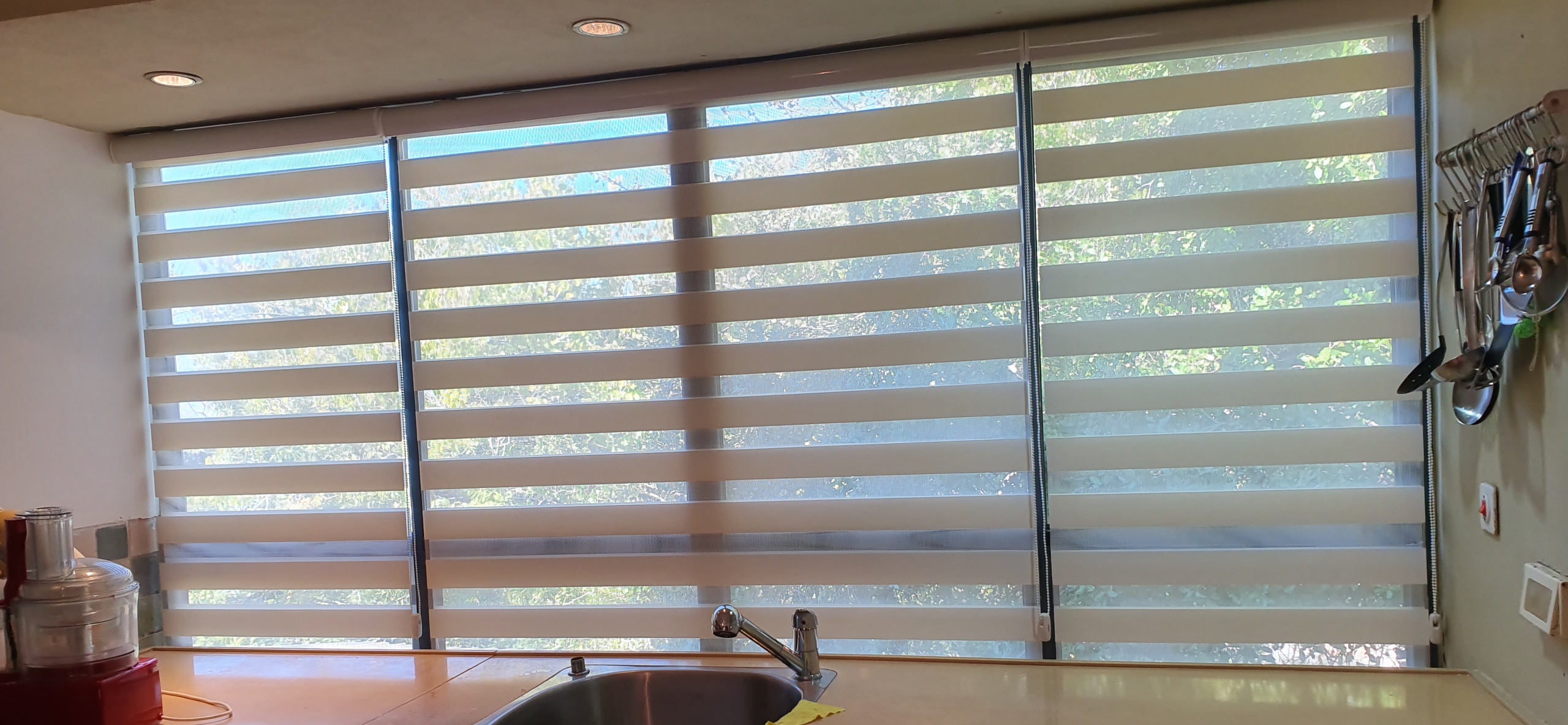 וילונות זברה הם בחירה מוצלחת למטבח, שכן הם משלבים מראה אלגנטי עם יעילות של תריס לשליטה באור. וילון זברה מורכב משתי שכבות של בד - רשת ובד אטום. שינוי מצב החפיפה ביניהן מאפשר שליטה באור ובפרטיות. וילונות אלו יוצרים אווירה נעימה ומזמינה במטבח ומגיעים במגוון רחב של צבעים. בנוסף, תוכלו לבחור את רוחב הפסים של בד הרשת - רחב, צר או רגיל, וכן בדי האפלה או הצללה. ניתן לבחור גם וילונות חשמליים או בעלי מנגנון ידני.