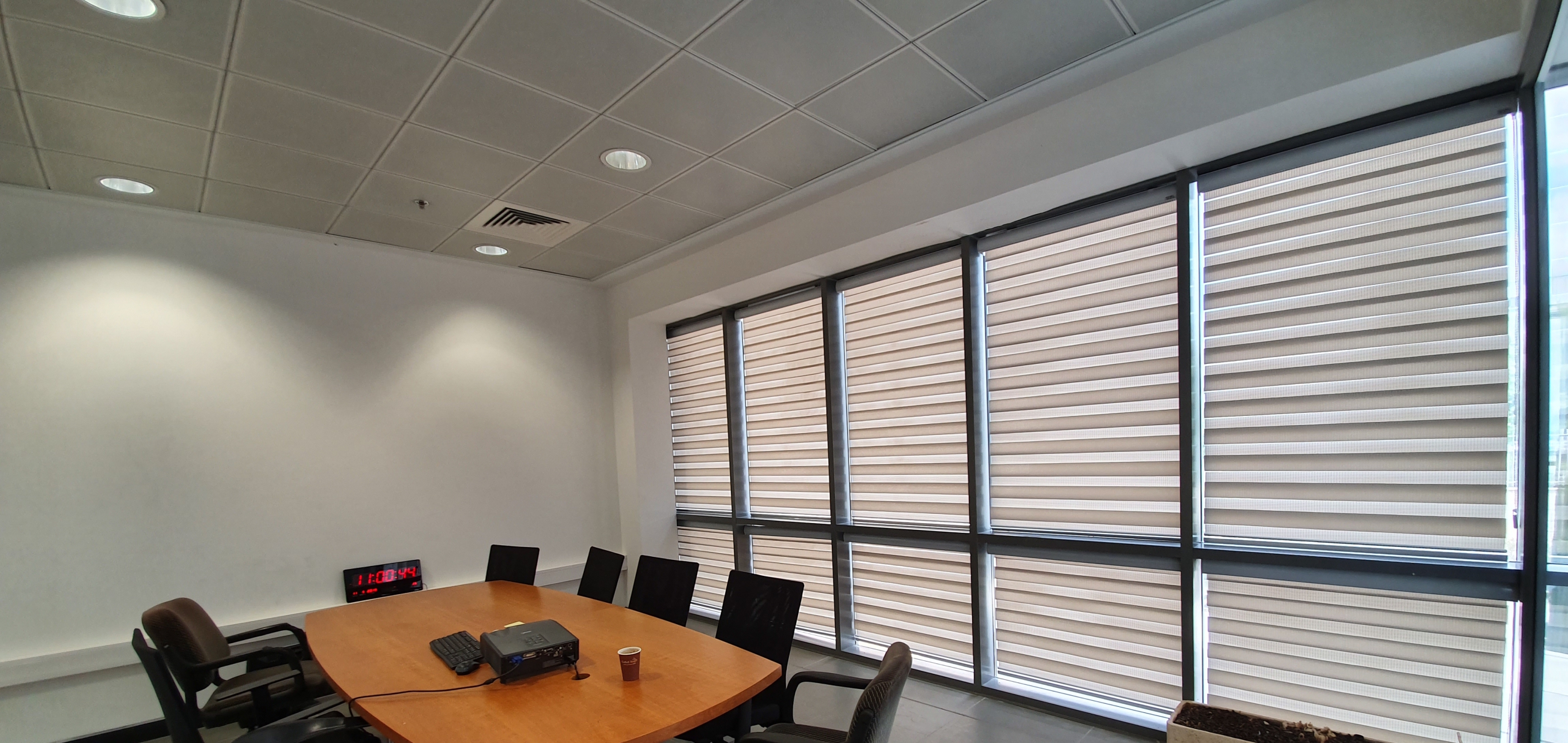 וילון זברה למשרד שייך לסדרת מוצרי הצללה המשלבים בין המראה האלגנטי של וילון הבד לבין יעילות השליטה באור של התריס, ומעניקים פתרון הצללה אופטימלי לחללי עבודה. וילון זברה למשרד כולל שתי שכבות של בד, רשת ובד אטום, המאפשרות שליטה מדויקת ברמת ההסתרה וכמות האור הנכנסת לחדר. מעבר למגוון הגוונים, ניתן לבחור את רוחב הפסים של בד הרשת – רחב, צר או רוחב פס רגיל, וכן את סוג הבד – בד האפלה או בד הצללה. ניתן לבחור גם וילונות חשמליים נוחים במיוחד, או וילונות בעלי מנגנון ידני. וילונות זברה מסננים את האור ברכות ובאופן שווה, ובעת ובעונה אחת מספקים פרטיות. המראה הקלאסי המסוגנן של הוילון יוצר אווירה נעימה ומקצועית בחלל המשרד ומבחר רחב של הגוונים, סגנונות ומידות מבטיח התאמה מושלמת לכל חדר וסגנון עיצוב משרדי.