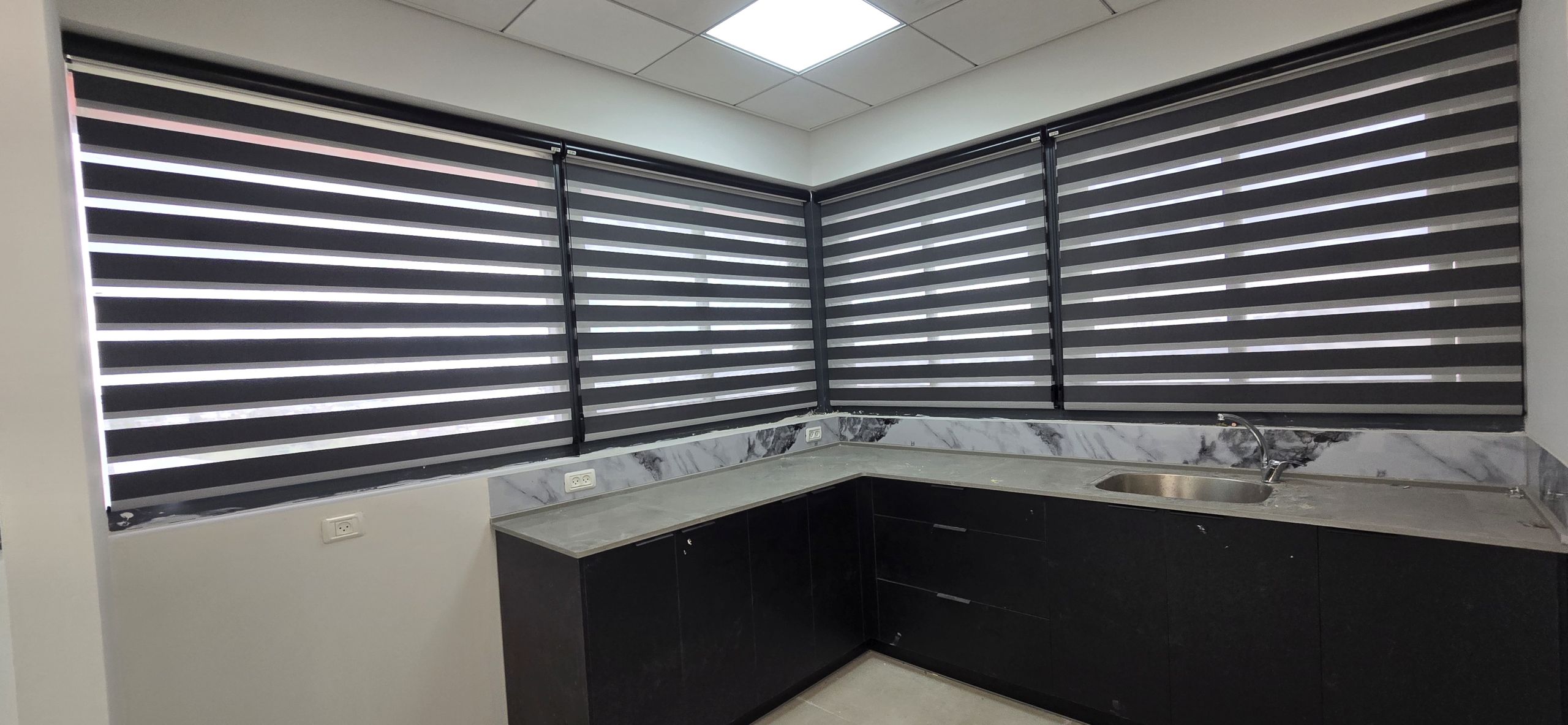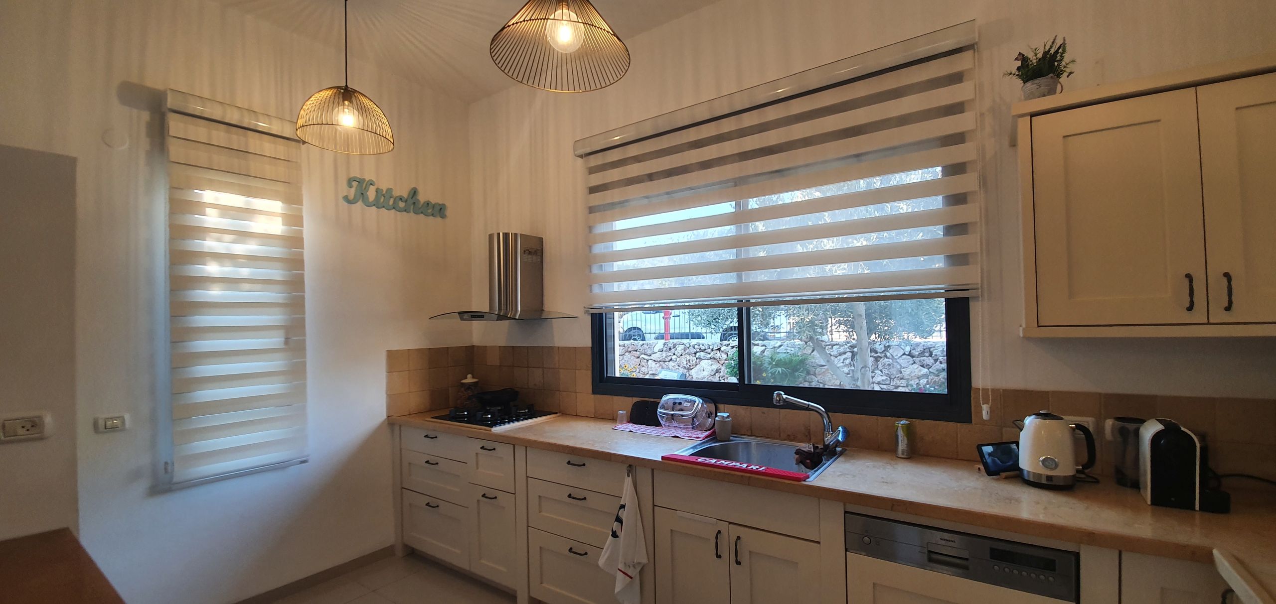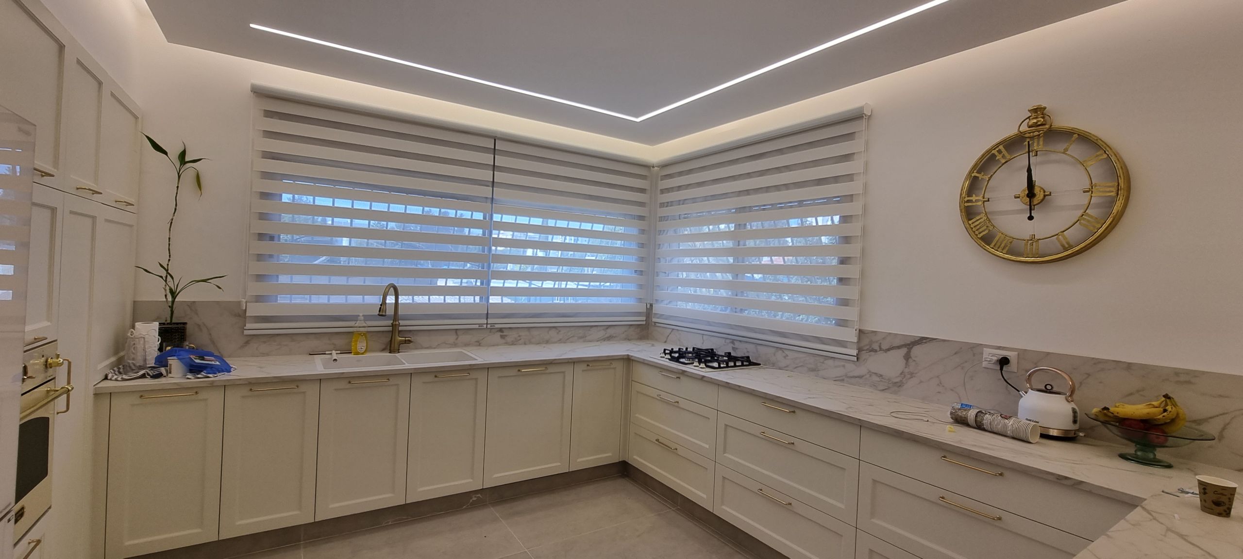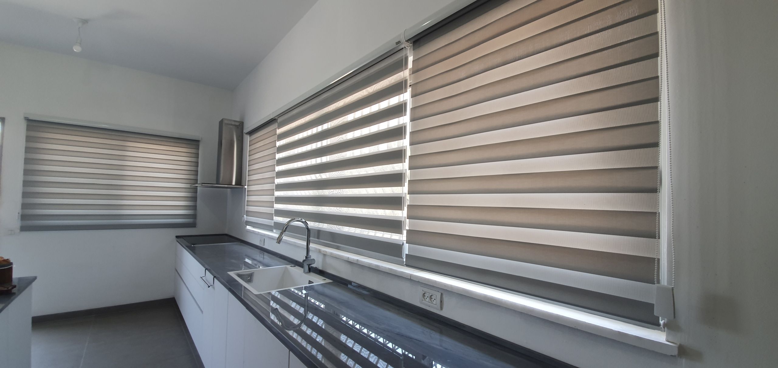 וילונות זברה הם בחירה מוצלחת למטבח, שכן הם משלבים מראה אלגנטי עם יעילות של תריס לשליטה באור.